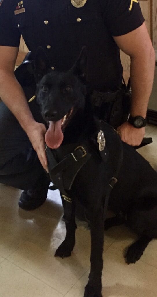 Xena’s favorite activities are meeting children and teaching them about K9,swimming in the baby pool and playing fetch.
